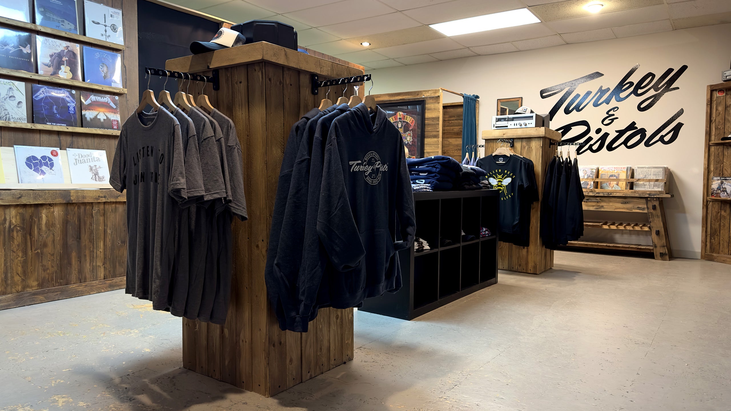 We created Turkey & Pistols inspired by classic album covers, gig posters and venue marquees. As designers and musicians we dreamed of sharing our art and our love of music with the rest of world. A space where art & music combined into a unique shopping experience and where creativity is celebrated.